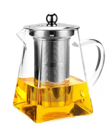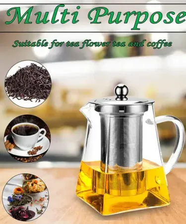 Borosilicate Glass Teapot with Heat Resistant Stainless-Steel Infuser Glass Tea Kettle