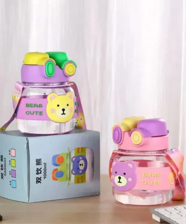 1000ml Cloud Bear Bottle Straw Large Capacity, Summer Children Portable Drinkware Tour Direct Drinking Big Belly Cup