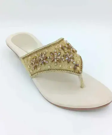 sendal for girls – flip flop for women- heels – export quality non slip sole -fancy chappal with exiting gold and whait colour and comfertable fiting
