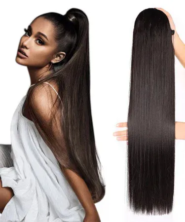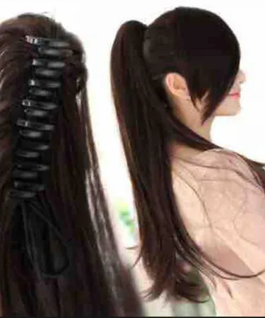 Straight catcher hair extension for girls, ponytail hair extension-natural black color
