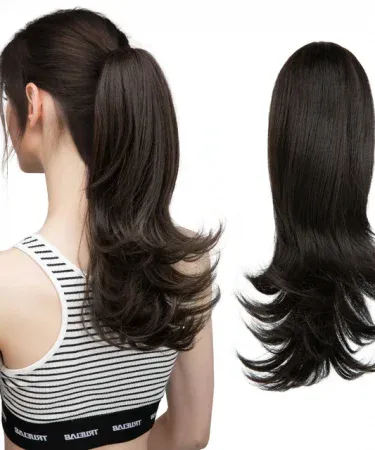 Catcher ponytail step cutting style hair extensions wig-natural brown color
