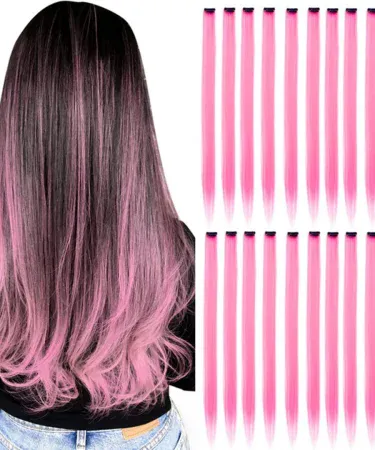 Pack of 6-PCS Long Straight Hair Clip Extensions for girls and women’s -baby Pink