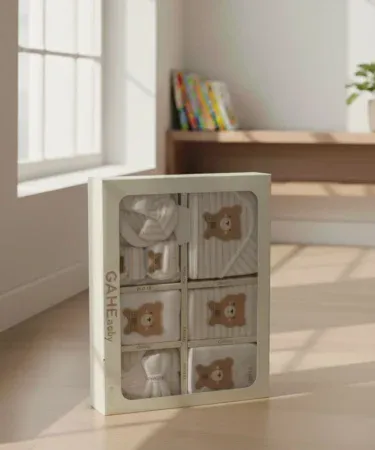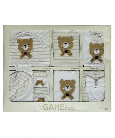 Newborn 12 Piece Teddy Bear Print Striped Gift Set , Unisex Infant Cotton Layette Set in Gift Box,New Baby Shower Gift Set with Bear Appliqué