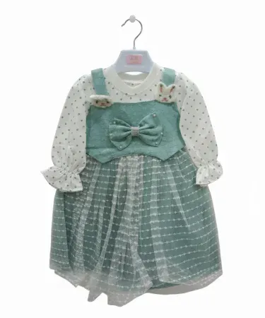 Bunny Tulle Dress Set, Mint green Polka Dot Party Dress, Sweet frock for girls, Premium and imported quality