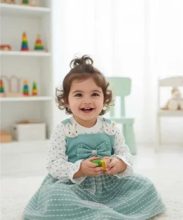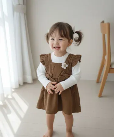 Dark green Corduroy Pinafore Dress with White Inner Shirt for Baby Girls, Premium and imported quality