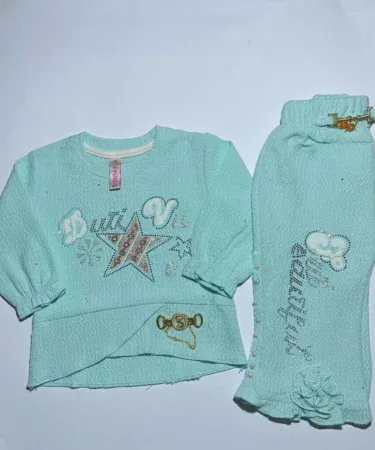 Textured Glam Set for Girls , Star Embellished Top & Legging Set, Girls party dress, premium and imported