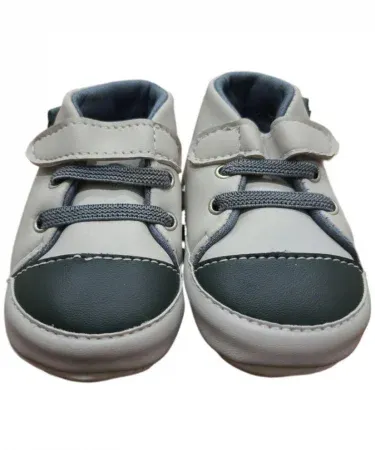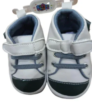 Infant Soft Sole Two-Tone Sneaker Booties (Clear, direct, and includes key features), White and Dark Green Contrast Toe Crib Shoes (Mentions the specific colors) ,Faux Lace and Velcro Strap Baby Walker Shoes (Accurately describes the closures)