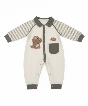The Dino-Go Snaps Romper, Dark green off white Trim Stripe Romper, Winter clothes, Premium and imported