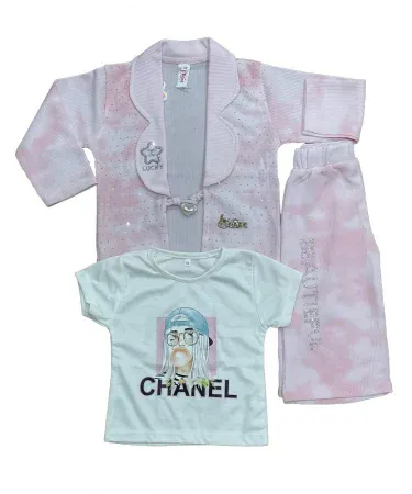 Pink Glam 3PC Set, Baby Girl Blazer Outfit, The Wide-Leg Three-Piece, Girls party dress, Premium and imported