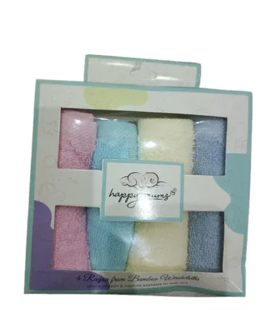 4-Pack Rayon from Bamboo Terry Baby Washcloths (Clear, includes piece count, material, and weave type) , Ultra-Soft Absorbent Newborn Face Cloths Multi-Pack (Focuses on function)