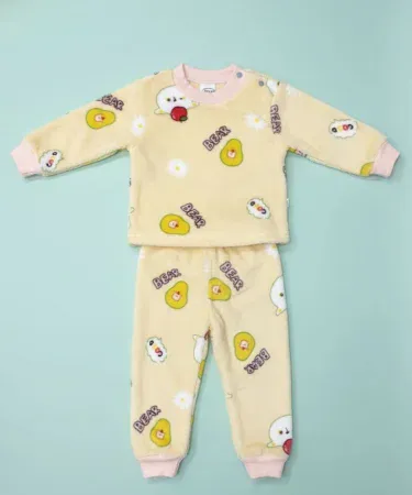 Plush Bear & Avocado Pajama Set Cozy Fleece Loungewear Set – Yellow Bear Print Soft Bear & Friends Sleepwear Set Pastel Yellow Fleece Pajama Set for Babies