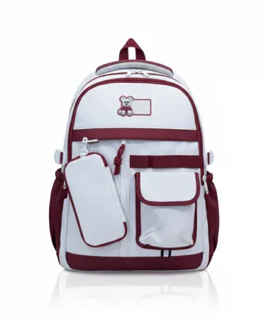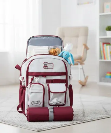 Insulated Two-Tone Diaper Backpack with Multi-Pockets Premium and Imported quality, Waterproof Burgundy & White Mother Bag for Travel