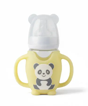 Cute Panda Silicone Baby Feeding Bottle with Handles – Anti-Colic & BPA-Free (Yellow),150ml,Anti-Colic and BPA free , Premium and Imported quality