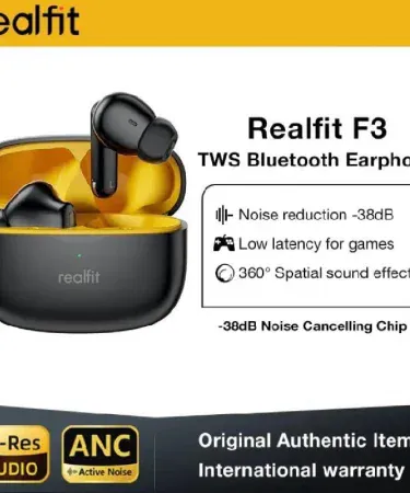 Realfit F3 ANC Active Noice Cancellation Bluetooth Earphones ENC Call HIFI Stereo Superb Bass Wireless Earbuds Sport Gaming
