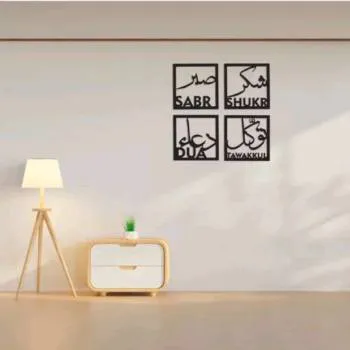 Arya Craft Set of 4 Islamic Wooden Wall Art Sabr, Shukr, Dua, Tawakul (12 inch X 12 inch)