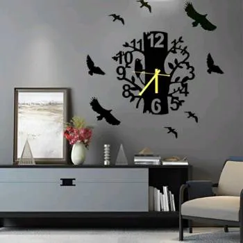 Birds Nest On Tree & Flying Birds Compressed Wooden Wall Clock