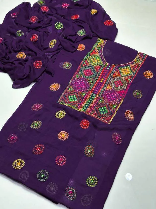 Pack of 3 Elegant Unstitched Women’s Embroidered Outfits