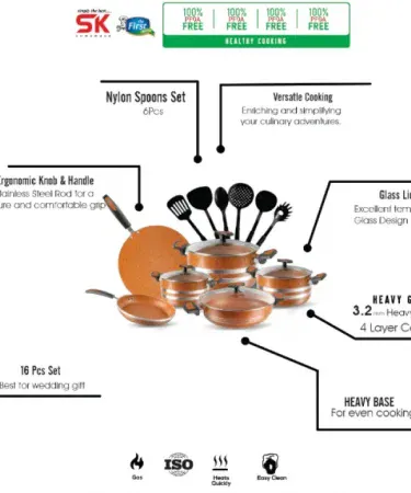 Gold cookware sk gift pack Non stick cookware set low price range Imported Quality with heavy Weight cookware Material set