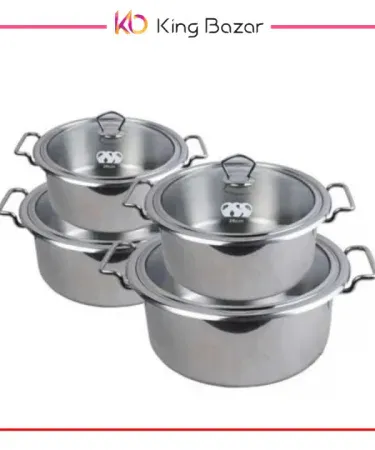 Alpha Stainless Steel Double Bottom Encapsulated Cookware Pack of 4-in-1 Casserole Pot Handi Set