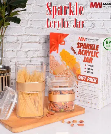 Household Sparkle Acrylic Jar – Pack of 3 (600ml, 750ml, 1200ml) | Stylish Gift Pack