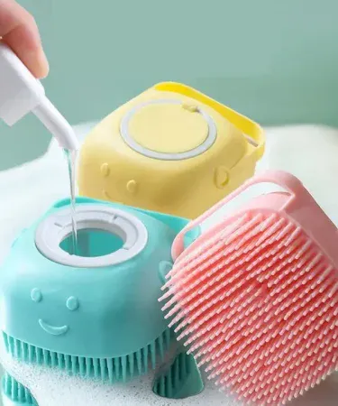 Silicone Bath And Body Shower Brush With Soap Dispenser Baby Bath Scrubber Ultra Soft Silicone Bath & Shower Brush Silicone Body Brush Massage Bath Brush Shower Scrubber SILICONE MASSAGE BATH BRUSH