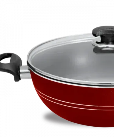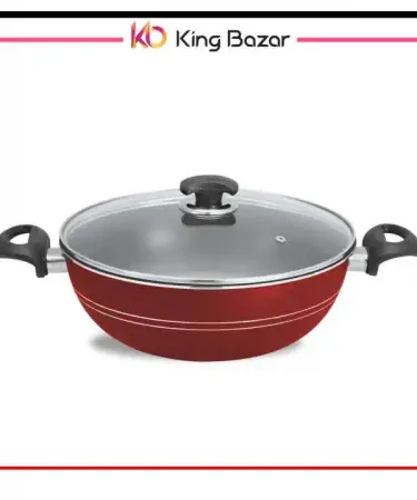 King Sheff Non-Stick Karahi Wok with Lid – Red Cooking Pot for Effortless Cooking