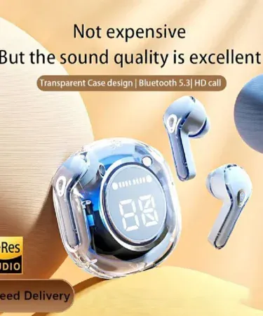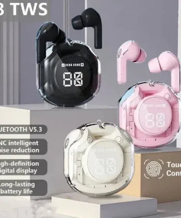 Air39 Tws Bluetooth Earbuds with Case, Transparent with LED Digital Display – High Quality Sound Bass & Long Battery Timing – Wireless Earphones for Music, Calls & Gaming – Stylish, Compact, and Powerful Audio