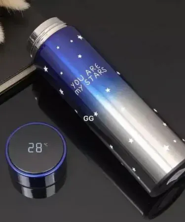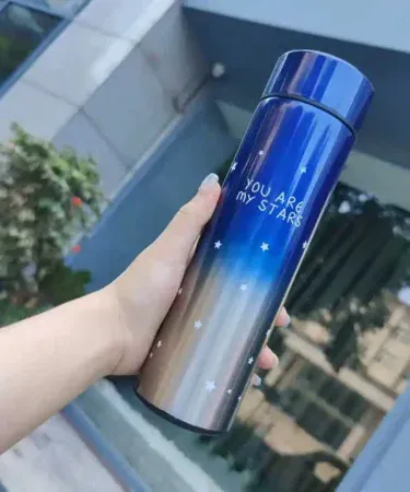 LED Temperature Water Bottle – 500ml Stainless Steel Thermos with Gradient Star Design, Hot Cold Water Bottle for Kids, Stylish Blue Star Glossy Bottle for Girls & Boys, Colorful Stars Water Bottle for School, College, and Daily Use – Perfect for Student