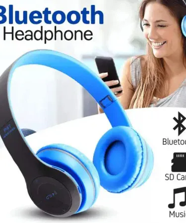 P47 Wireless Bluetooth Headphones Over-Ear Foldable Stereo Headset with Mic, SD Card Slot, FM Radio, Noise Cancelling, Rechargeable Battery – Best for Music, Gaming, Calls & Workout – Universal Compatibility