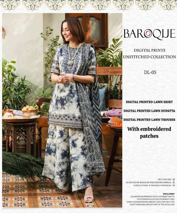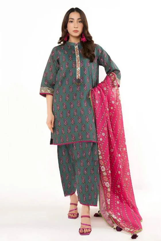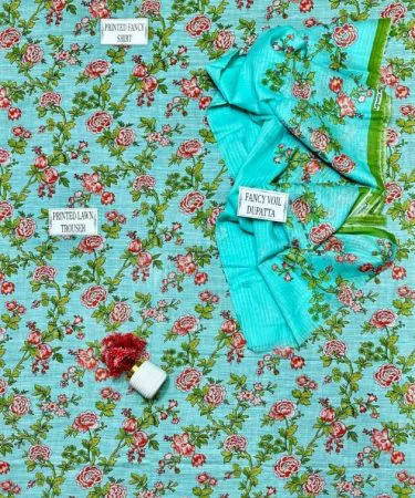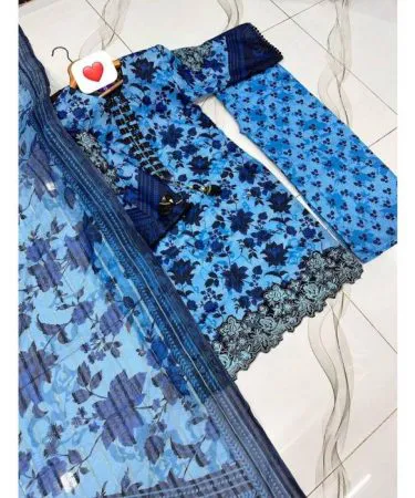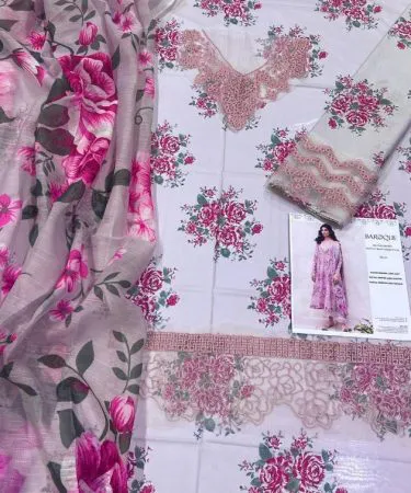 Elegant Women’s 3 Pcs Unstitched Suite: Print and Embroidery Combo