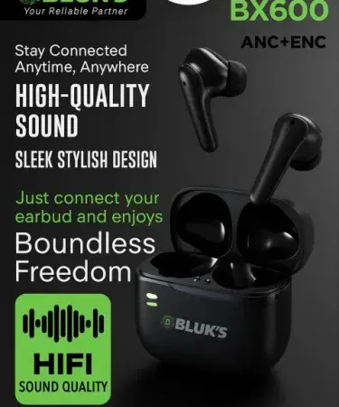 Black Air Birds BX600 Wireless Earbuds with Detachable Jack Mic – Dual Mode (Bluetooth+Mic) for Calling, Gaming & Recording – Only at Budget Buyz earbuds with mic jack black air birds BX600 mic feature earbuds with detachable mic Earbuds