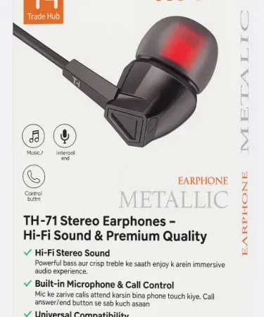 TH-71 Metalic Stereo Earphones with Mic Heavy Bass HiFi Sound 3.5mm Jack Handsfree handsfree with mic, 3.5mm jack, heavy bassStereo Earphones, Best Handsfree for Android, 3.5mm Jack Earphone, Metallic Earphone with Mic, HiFi Sound, Heavy Bass Handsfree,