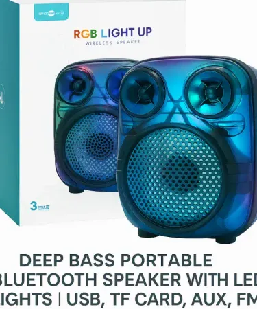 RGB Light Up Wireless Speaker GTS-216 Deep Bass Portable Bluetooth Speaker with LED Lights USB, TF Card, AUX, FM Support Rechargeable Wireless Speaker, Bluetooth Speaker, RGB Speaker, LED Light Speaker, Rechargeable Speaker, Party Speaker, Portable