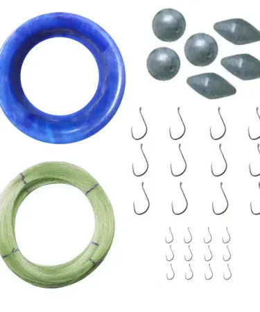 Fishing Hand Caster Tackle With 24 Hooks, 6 Piece Weight, 500 Yards 15 LB