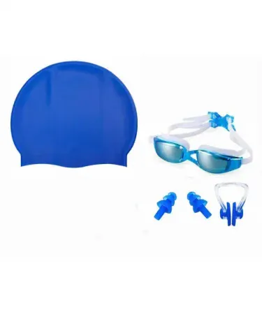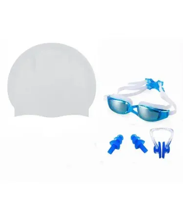 Set of 4 – Swimming Glasses Goggles Swim Cap Ear Plugs Nose Clip Anti-Fog UV Protection