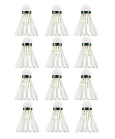 Pack Of 12 Feather Badminton Shuttlecocks with Great Stability and Durability, Indoor Badminton Court Birdies