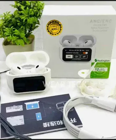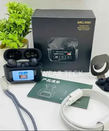 White A9 Pro ANC AirPods with Screen | Bluetooth 5.4 earbuds sound base ,wireless, super sound low price