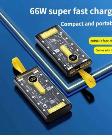 20000 MAH 66W FAST CHARGING TRANSPARENT POWER BANK-POWER BANK FOR ANDROID I Phone-Fast charging power bank-Transparent power bank-Portable 66W power bank-Mini fast charging power bank-Large capacity power bank-Power bank-Led Crystal display power bank.