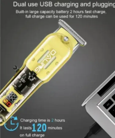 Daling DL-1585 USB Rechargeable Professional Hair Trimmer With Transparent Body And LED Display