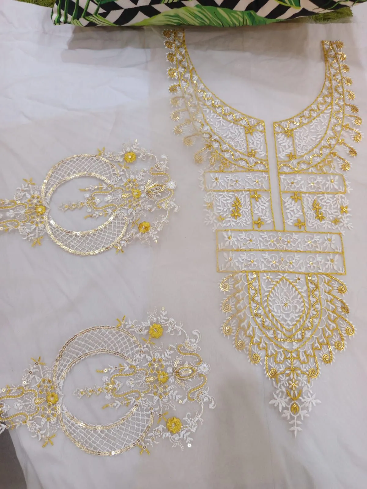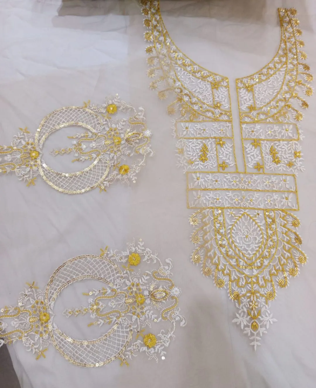 yellow white set neckline and patch/laces complete set for ladies clothes Posted on August 6, 2025 By Muryam 0 comment Uncategorized Product Description Beautiful ad elegant neck line with white bunches Product Specifications Specification Value Brand No Brand SKU 536249816_PK-2516452708